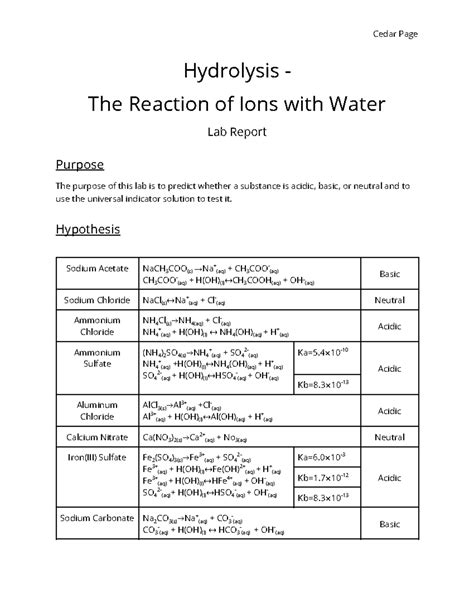 Reading Online HEATH CHEMISTRY LAB 20D HYDROLYSIS ANSWERS Doc Library Genesis